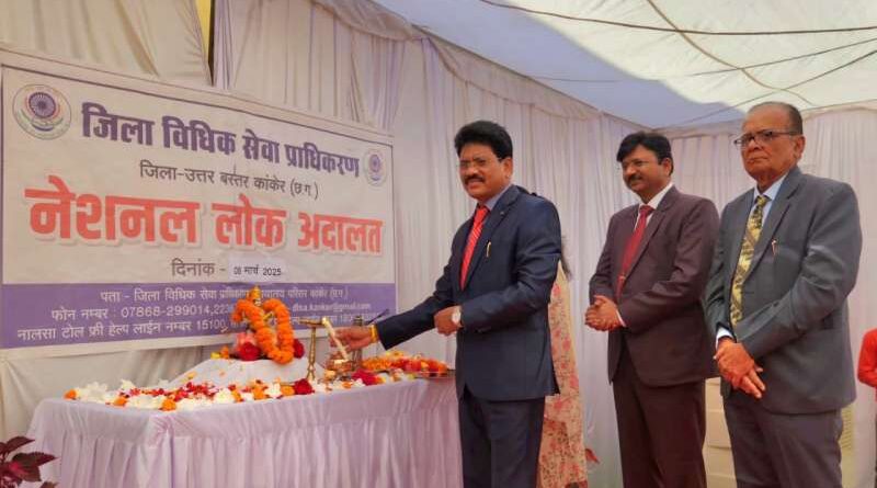 उत्तर बस्तर कांकेर : राष्ट्रीय विधिक सेवा प्राधिकरण द्वारा निर्धारित कार्यक्रम के तत्वावधान में जिला एवं सत्र न्यायालय कांकेर में प्रथम नेशनल लोक अदालत का आयोजन किया गया। प्रधान जिला एवं सत्र न्यायाधीश आनंद ध्रुव द्वारा नेशनल लोक अदालत का शुभारंभ किया।