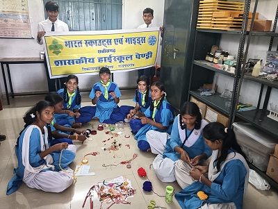 राजनांदगांव। एक राखी सैनिक भाइयों के नाम के तहत जिले के गाइड रेंजर गाइडर बहनों द्वारा रक्षाबंधन के अवसर पर देश की रक्षा के लिए अपने परिजनों से दूर देश की सीमाओं में सेवारत जवानों के सम्मान में हाथों से बने 1375 रक्षा सूत्र राखियां तैयार किया गया है। इन रक्षा सूत्र राखियों को जवानों तक पहुंचाने के लिए राज्य मुख्यालय भारत स्काउट्स एवं गाइड्स छत्तीसगढ़ रायपुर को प्रेषित किया गया है। इस कार्य में 32 शालाओं की गाइड रेंजर प्रभारी सहित विकासखंड सचिव स्काउट-गाइड प्रवीण साव, लेखराम वर्मा, टोमन पटेल, नीलकंठ धु्रर्वे का विशेष सहयोग रहा।