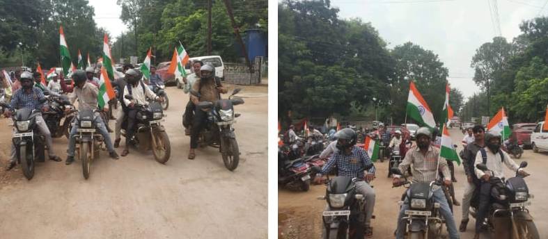 राजनांदगांव। हर घर तिरंगा, हर घर स्वच्छता : स्वतंत्रता का उत्सव, स्वच्छता के संग थीम के तहत जनपद पंचायत डोंगरगढ़ में स्वच्छता शपथ ली गई। इसके साथ ही स्वतंत्रता दिवस के अवसर पर राष्ट्रध्वज के प्रति सम्मान में नागरिकों को राष्ट्रीय ध्वज अपने घर मे फहराने के लिए प्रेरित करने तथा आमजनों में देशभक्ति की भावना विकसित करने के लिए तिरंगा बाईक रैली निकालकर जागरूक किया गया। कार्यक्रम में अनुविभागीय अधिकारी राजस्व डॉ. भार्गव, मुख्य कार्यपालन अधिकारी जनपद पंचायत डोंगरगढ़, जनपद पंचायत डोंगरगढ़ के अधिकारी तथा कर्मचारी एवं ग्राम पंचायत सचिव सहित ग्रामीणजन शामिल हुए।
