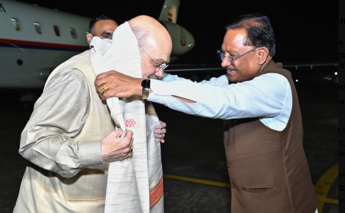 अमित शाह पहुंचे रायपुर, सीएम साय ने किया स्वागत