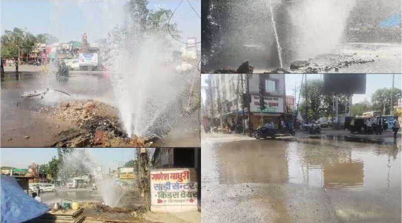 बीती रात नाली निर्माण कार्य के दौरान कर्मचारियों द्वारा अमृत निर्माण का पाइप छोड़ दिया गया और उसे ऐसे ही छोडकऱ कर्मचारी सुबह होते ही निकल गए, जैसे ही सुबह शहर को पानी देने के लिए टंकियों को खोला गया, तो बस स्टैंड में फूटे हुए पाइप लाइन से पानी का फव्वारा निकलने लगा।