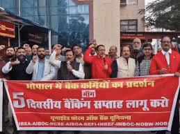 बैंकों में 5 डे वीक वर्किंग की मांग,भोपाल में धरना:एमपी नगर में इकट्टा होंगे