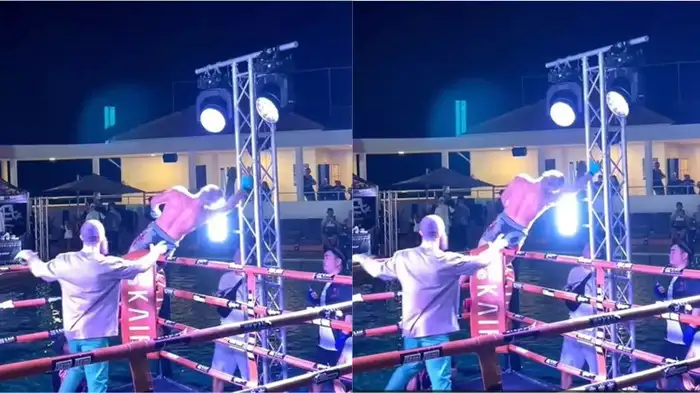 हालांकि, जैसे ही उन्होंने रिंगसाइड लाइट को छुआ उन्हें बिजली का एक तेज झटका लगा। उनका शरीर पूरी तरह से अकड़ गया और फिर वे कैनवास पर गिर पड़े। अच्छी बात ये रही कि इस झटके बाद वह तुरंत ही फिर से उठ खड़े हुए और फिर रिंग से पानी में छलांग लगाया। इवान पार्शिकॉफ ने इस घटना का वीडियो अपने सोशल मीडिया हैंडल पर शेयर किया है