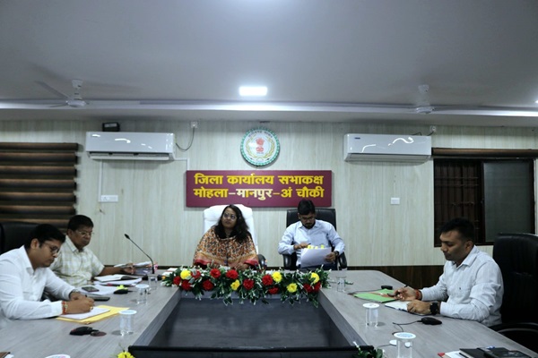 कलेक्टर श्रीमती प्रजापति ने पीएम श्री स्कूल में किए जा रहे निर्माण एवं मरम्मत कार्यों की समीक्षा की। उन्होंने आरईएस को स्कूलों के लंबित एवं निर्माणाधीन कार्यों को प्राथमिकता के साथ पूर्ण करने के निर्देश दिए। उन्होंने जिले के सिंचाई क्षेत्र विस्तार हेतु सिंचाई विभाग को विस्तृत कार्ययोजना बनाने के निर्देश दिए, जिससे क्षेत्र के किसानों को इसका लाभ मिल सके, इसी प्रकार उन्होंने जनपद एवं अन्य संबंधित विभागों को जल संचयन एवं भू-जल स्तर सुधार हेतु कार्य करने के निर्देश दिए। कलेक्टर श्रीमती प्रजापति ने जनदर्शन एवं विभिन्न शिकायत पोर्टल की समीक्षा की। उन्होंने कहा कि सभी विभाग शासन की प्राथमिकता अनुरूप प्राप्त सभी आवेदनों का प्राथमिकता से निराकरण सुनिश्चित करें। उन्होंने आयुष्मान, वय वंदना कार्ड की प्रगति की समीक्षा करते हुए स्वास्थ्य विभाग को प्रगति लाने के निर्देश दिए। इसी प्रकार उन्होंने महिला बाल विकास विभाग को महतारी वंदन योजना का सर्वे कार्य सुनिश्चित करने हेतु निर्देशित किया। कलेक्टर श्रीमती प्रजापति ने स्वास्थ्य विभाग को निर्देशित किया कि क्षेत्र में कार्यरत डॉक्टरों द्वारा बेहतर कार्य करने पर उन्हें प्रोत्साहित करते हुए सम्मानित करें। इसी प्रकार जिले के अन्य विभागों के कर्मचारियों को उनके उत्कृष्ट कार्य करने पर सम्मानित किया जाएगा। इस अवसर पर डीएफओ श्री दिनेश पटेल, अपर कलेक्टर श्री घासी राम मरकाम, एसडीएम मोहला श्री हेमेन्द्र भुआर्य, एसडीएम मानपुर श्री अमित नाथ योगी सहित सभी विभाग के अधिकारी उपस्थित रहें।