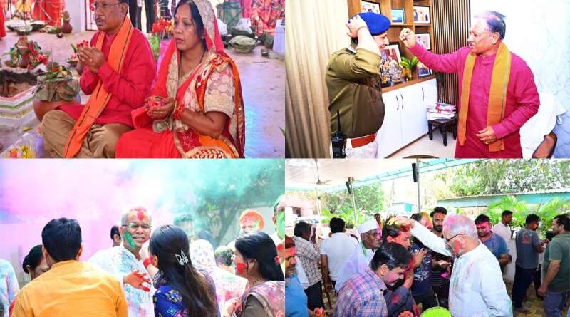 मुख्यमंत्री विष्णुदेव साय ने अपने पैतृक गांव बगिया में रंग और गुलाल के साथ होली मनाई। उन्होंने भगवान राधा-कृष्ण की पूजा कर खुशहाली की कामना की।