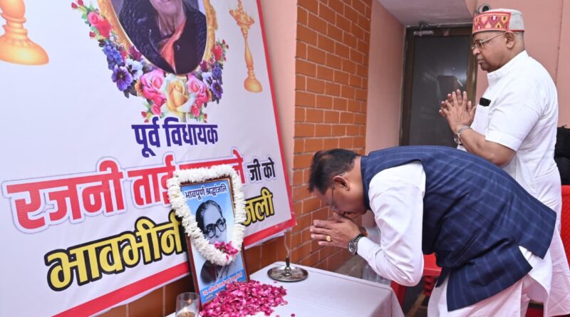 मुख्यमंत्री साय ने रायपुर की पहली महिला विधायक स्वर्गीय रजनी ताई उपासने के निवास पहुंचकर अर्पित की श्रद्धांजलि