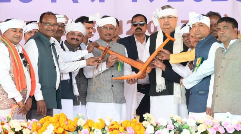 रायपुर। मुख्यमंत्री विष्णु देव साय शुक्रवार को राजनांदगांव जिले के गोड़लवाही में अखिल भारतीय हल्बा-हल्बी महासभा के द्वारा बिरसा मुण्डा 150वीं जन्म शताब्दी के कार्यक्रम में शामिल हुए। इस अवसर पर उन्होंने शहीद शिरोमणि गैंदसिंह नायक मूर्ति का अनावरण किया और उन्हें श्रद्धांजलि अर्पित की। कार्यक्रम में विधानसभा अध्यक्ष डॉ. रमन सिंह और सांसद संतोष पाण्डेय विशेष रूप से उपस्थित थे।