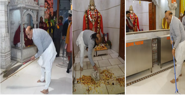 रक्षा मंत्री राजनाथ सिंह हनुमान सेतु मंदिर परिसर में स्वच्छता अभियान के तहत सफाई के काम में हुए शामिल