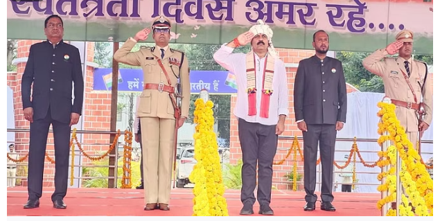 स्वतंत्रता दिवस के मुख्य समारोह में मुख्य अतिथि के रूप में उप मुख्यमंत्री विजय शर्मा ने ध्वजारोहण किया