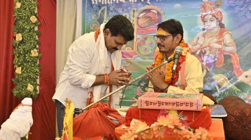 उपमुख्यमंत्री विजय शर्मा कबीरधाम जिला के ग्राम मदनपुर में आयोजित भागवत गीता महापुराण में हुए शामिल