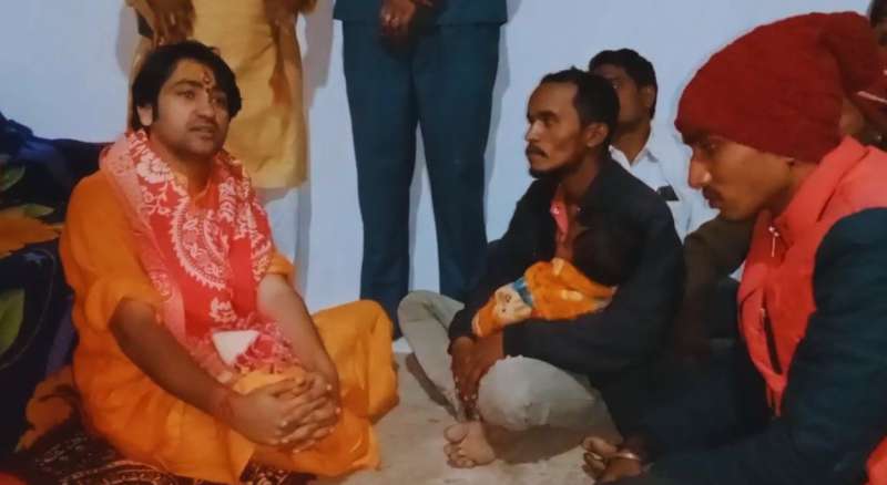 मृतक साधराम यादव के परिजनों से अचानक मिले धीरेंद्र कृष्ण शास्त्री