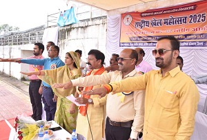 राजनांदगांव। एकलव्य आदर्श आवासीय विद्यालय राष्ट्रीय खेल महोत्सव 2025 मध्य क्षेत्र संभाग क्रमांक 2 स्तरीय आयोजन का शुभारंभ आज अंतर्राष्ट्रीय हॉकी स्टेडियम राजनांदगांव में किया गया। कार्यक्रम में मुख्य अतिथि के रूप में अध्यक्ष जिला पंचायत श्रीमती किरण वैष्णव शामिल हुई। अध्यक्ष जिला पंचायत श्रीमती किरण वैष्णव ने कहा कि खेल में अनुशासन और नियम बहुत महत्वपूर्ण होता है। अनुशासन और नियम के साथ लक्ष्य बनाकर खेलना चाहिए। अनुशासन ही व्यक्ति का व्यक्तित्व निखारता है। उन्होंने सभी खिलाडिय़ों को अनुशासन और नियम का पालन करते हुए खेल में हिस्सा लेने के लिए कहा। उन्होंने कहा कि खेल में दो पहलू होते हैं, हार और जीत। लेकिन हार होने पर निराश नहीं होना चाहिए मेहनत हमेशा करने के लिए कहा। मेहनत करने से निश्चित रूप से सफलता मिलती है। उन्होंने कहा कि अच्छा संघर्ष करेंगे तो परिणाम भी बहुत अच्छा आएगा। उन्होंने खिलाडिय़ों को प्रोत्साहित करते हुए कहा कि टीम स्पर्धाओं में प्रत्येक खिलाड़ी की जिम्मेदारी होती है कि वे अपनी टीम को विजयी बनाएं। उसी तरह एकल खेल प्रतियोगिता में स्वयं को जीतना होता है। उन्होंने कहा कि खेल के मैदान में हार और जीत के लिए एक-एक सेकेण्ड बहुत महत्वपूर्ण होता है। लक्ष्य एवं उद्देश्य बनाकर ख्रेल में प्रथम स्थान के लिए खेलना चाहिए। सफलता पाने के लिए लक्ष्य निर्धारित करने कहा।