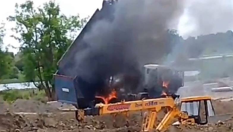 राखड़ खाली करने गए डंपर में हाईटेंशन लाइन की चपेट में आने से लगी आग