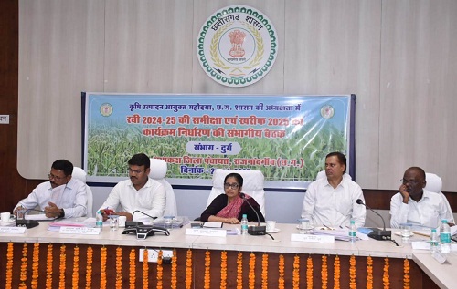 जिला पंचायत सीईओ सुरूचि सिंह ने जिले में रबी 2024-25 एवं खरीफ 2025 में किए जा रहे कार्यों के संबंध में जानकारी दी। उन्होंने कहा कि जिले में फसल विविधीकरण की दिशा में लगातार कार्य किया जा रहा है। इसके साथ ही तिवड़ा, कुलथी, अलसी का उत्पादन भी जिले में होता है। मक्के की फसल की बिक्री के लिए भी चर्चा की। किसान क्रेडिट कार्ड 89 प्रतिशत सक्रिय है। खाद-बीज की अमानक होने की स्थिति में कार्रवाई की जा रही है। उन्होंने जिले में जल संरक्षण के लिए किए जा रहे कार्यों की जानकारी दी। उन्होंने जिले में वाटर शेड निर्माण की बात रखी। ग्रीष्म ऋतु में अम्बाड़ी शरबत, जैविक खेती के तहत किसानों द्वारा किए जा रहे खेती के संबंध में जानकारी दी। उन्होंने बताया कि एबीस एवं राजा राम कंपनी द्वारा मक्के के बीज उपलबध कराएं गए है और 3 हजार एकड़ में मक्के की फसल ली जा रही है। इसके लिए वैज्ञानिक तरीके से खेती करने में मदद मिलेगी तो और अच्छा लाभ हो सकता है। उन्होंने फसल की किस्मों, उर्वरक एवं बीज की मांग प्राईस सपोर्ट स्कीम अंतर्गत अधिसूचित फसलों के पंजीयन, फसलवार उपार्जन तथा फसल विविधीकरण में इसके उपयोग हेतु रणनीति एवं सुझाव के संबंध में चर्चा की गई। इस अवसर पर संचालक कृषि एवं प्रबंध संचालक छत्तीसगढ़ राज्य बीज एवं कृषि विकास निगम लिमिटेड, संचालक पशुधन विकास विभाग, पंजीयक सहकारी संस्थाएं, प्रबंध संचालक मंडी बोर्ड, प्रबंध संचालक मार्कफेड, प्रबंध संचालक बीज प्रमाणीकरण संस्था, संचालक मत्स्य पालन विभाग, क्षेत्रीय प्रबंधक नाबार्ड, प्रमुख अभियंता जल संसाधन विभाग, उप संचाल कृषि नागेश्वर लाल पाण्डेय सहित अन्य अधिकारी उपस्थित थे।