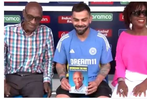 बारबाडोस के मैदान पर जिस वक्त टीम इंडिया प्रैक्टिस के लिए आई, उसी समय दिग्गज गेंदबाज भी वहां पहुंचे। इस दौरान विराट कोहली ने उन्हें मुलाकात की और डगआउट में बैठकर तस्वीर भी खिंचवाई। दिलचस्प बात यह है कि कोहली ने हॉल की किताब का विमोचन भी किया जिसका वीडियो अब सामने आया है।