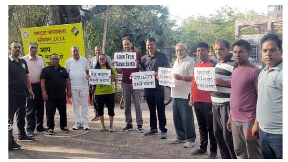 कोठी रोड के हरे पेड़ काटने के खिलाफ गांधीवादी तरीके से प्रदर्शन, पूछा- क्या वृक्ष काटकर ही विकास संभव?