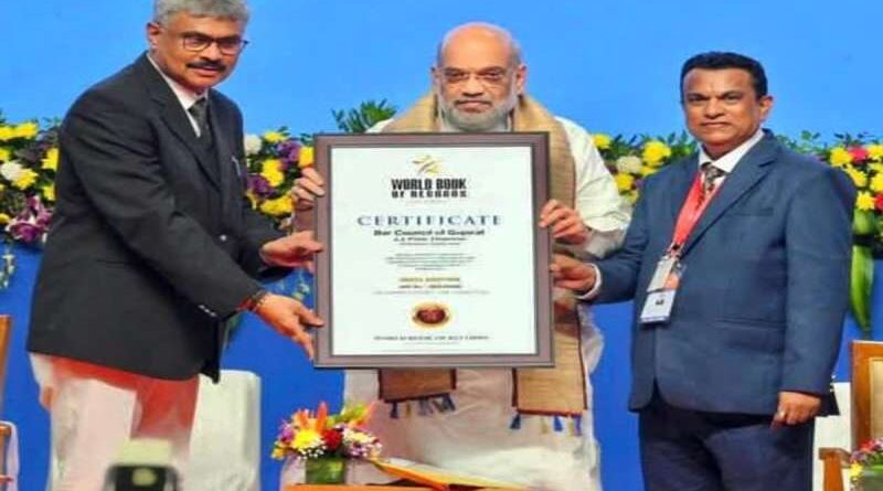 वर्ल्ड बुक ऑफ़ रिकॉर्ड्स का प्रमाण-पत्र बार काउंसिल ऑफ गुजरात को प्रदान करते गृह मंत्री अमित शाह