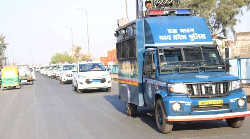 फ्लैग मार्च लाल परेड ग्राउंड से शुरू होकर लिली टॉकीज तिराहा, जिंसी तिराहा, बोगदा पुल होते हुए प्रभात चौराहा से अशोक गार्डन, 80 फीट रोड होते हुए भारत टॉकीज ओवर ब्रिज होते हुए संगम टॉकीज तिराहा, काली मंदिर, चार बत्ती चौराहा, रेत घाट, रॉयल मार्केट तिराहा लालघाटी चौराहा होते हुए वापस रेत घाट, पाॅलीटेक्निक चौराहा, राजभवन तिराहे होते हुए वापस लाल परेड ग्राउंड पहुंचा.