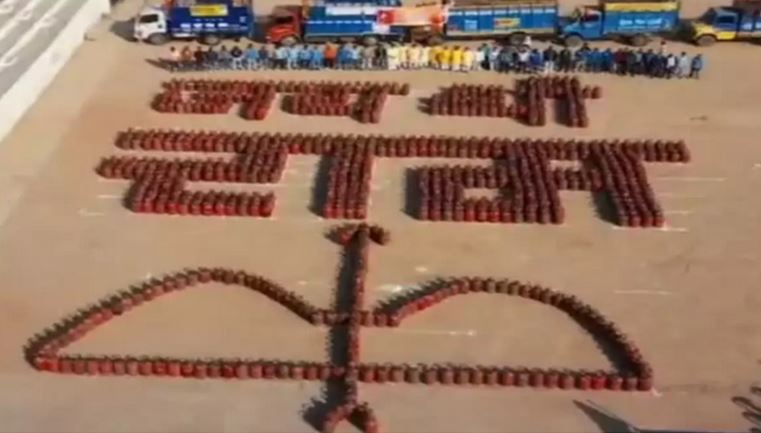 रामलला की प्राण प्रतिष्ठा पर LPG गैस सिलेंडर से लिखा ‘जय श्री राम’