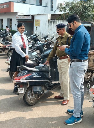 राजनांदगांव। परिवहन विभाग एवं यातायात पुलिस द्वारा चलाए जा रहे सड़क सुरक्षा माह अंतर्गत रॉयल किड्स कॉन्वेंट स्कूल के सामने जांच एवं जागरूकता अभियान चलाया गया। अभियान के दौरान यातायात नियमों का उल्लंघन करने वाले छात्रों को उनके पालकों से फोन पर चर्चा कर सड़क सुरक्षा के प्रति समझाइश दी गई। साथ ही छात्रों को हेलमेट पहनकर वाहन चलाने एवं ड्राइविंग लाइसेंस बनवाकर ही वाहन चलाने के लिए कहा।