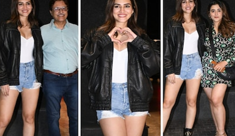 फिल्म की स्क्रीनिंग में बहन नुपुर और पापा के साथ पहुंचीं कृति सेनन