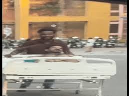 हमीदिया अस्पताल से एक चिंताजनक वीडियो सामने आया है। इसमें एक हृदय रोगी को उसका अकेला परिजन स्ट्रेचर पर धक्का देता हुआ पुरानी कैथलैब से नए भवन की 11वीं मंजिल तक ले जाता दिख रहा है।