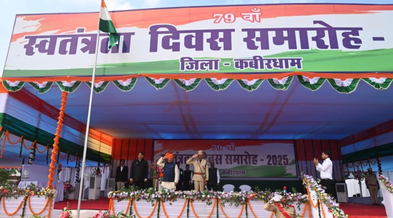 कवर्धा । आचार्यपंथ गृंधमुनि नाम साहेब शासकीय स्नातकोत्तर महाविद्यालय मैदान में जिले का 79वां स्वतंत्रता दिवस समारोह धूमधाम और उत्साह के साथ मनाया गया। मुख्य समारोह में सांसद संतोष पाण्डेय ने ध्वजारोहण किया और मुख्यमंत्री का संदेश जनता के नाम पढ़ा।