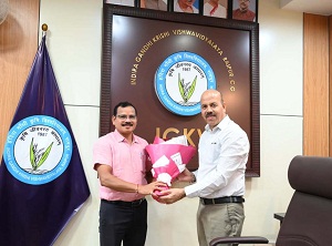 रायपुर। इंदिरा गांधी कृषि विश्वविद्यालय के नवनियुक्त कुलसचिव कपिलदेव दीपक ने आज पदभार ग्रहण किया. उन्होंने प्रभारी कुलसचिव डॉ सी पी खरे से कुलसचिव पद का प्रभार लिया. पदभार ग्रहण करने के उपरांत दीपक ने कृषि विश्वविद्यालय के कुलपति डॉ गिरीश चंदेल से सौजन्य मुलाकात की. डॉ चंदेल ने दीपक को उनके सफल कार्यकाल हेतु शुभकामनाएं दी. कपिल देव दीपक ने विश्वविद्यालय के अधिकारियों से संवाद कर विश्वविद्यालय की कार्यप्रणाली एवं गतिविधियों के बारे में जानकारी प्राप्त की. इस अवसर पर उप कुलसचिव डॉ यमन देवांगन, डॉ श्रीकांत चितले, डॉ विजय सोनी सहित विश्वविद्यालय प्रशासन के वरिष्ठ अधिकारी उपस्थित थे. उल्लेखनीय है कि कपिल देव दीपक मूलतः कृषि विभाग में संयुक्त संचालक के पद पर पदस्थ है.