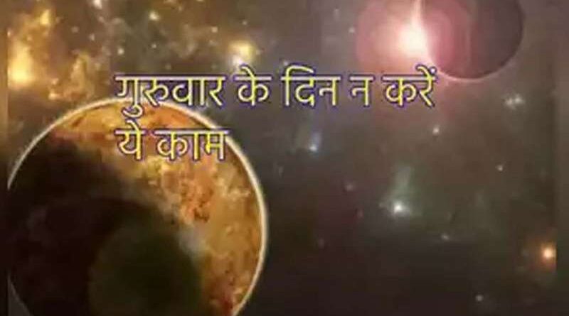 ज्योतििषशास्त्रए में भी कुछ ऐसा ही माना गया है कि बृहस्पतिआ ग्रह की अनुकूलता के लिए कुछ ऐसे काम हैं, जो गुरूवार के दिन नहीं करने चाहिए. सुखद पारिवारिक जीवन, शिएक्षा, ज्ञान और धन इनकी कृपा से ही प्राप्त होता है। शास्त्रों के अनुसार कुछ ऐसे काम हैं, जो गुरूवार के दिन नहीं करने चाहिए अन्यथा अनुकूल गुरू भी प्‌ितिहकूल प्रभाव देता है।
