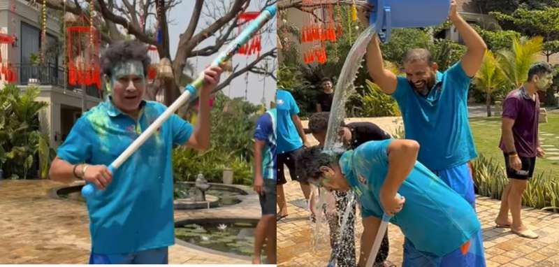 मुंबई में सचिन ने अपने साथियों के साथ होली खेली। उन्होंने इंटरनेशनल मास्टर्स लीग के अपने साथियों युवराज सिंह, इरफान पठान, युसुफ पठान और अंबाती रायडू के साथ होली मनाई। सचिन ने एक वीडियो शेयर किया जिसमें वो युवराज पर पानी की पिचकारी से रंग डाल रहे हैं। वो युसुफ और रायडू पर भी रंग लगाते दिख रहे हैं। इसी बीच रायुडू ने सचिन तेंदुलकर के पैर छूकर उन्हें प्रणाम भी किया। किसी सीनियर को इज्जत कैसे दी जाती है यह हर किसी को रायुडू से सीखना चाहिए।