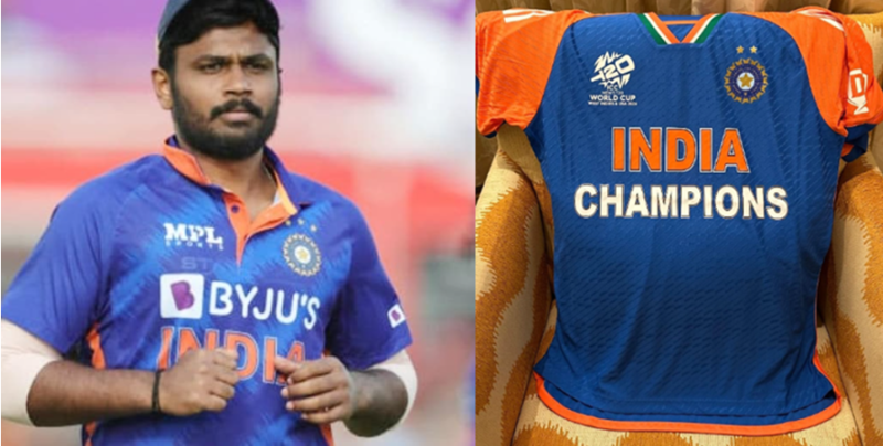 संजू सैमसन ने नई जर्सी का फोटो इंस्‍टाग्राम पर शेयर किया, जिसमें बड़ा बदलाव दिखा। बीसीसीआई लोगो के ऊपर दूसरा स्‍टार दिखा, जो दर्शाता है कि भारत ने दो बार टी20 वर्ल्‍ड कप खिताब जीता है। जर्सी के सामने वाले हिस्‍से में चैंपियंस लिखा है। याद हो कि भारत ने पहला टी20 वर्ल्‍ड कप 2007 में एमएस धोनी की कप्‍तानी में जीता था।