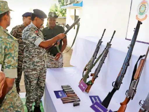 कई हथियार व विस्फोटक बरामद मुठभेड़ के बाद जवानों ने सर्चिंग में मौके से 2 इंसास राइफल, 5 मैग्जीन, 68 कारतूस, 1 नग 9 एमएम काबाईन, 3 मैग्जीन, 22 कारतूस, 1 नग प्वाइंट 303 राइफल, 1 मैग्जीन, 13 कारतूस, 1 नग सिंगल शॉट राइफल, 1 नग 12 बोर बंदूक, 8 कारतूस, रेडियो, स्कैनर, मल्टीमीटर, हैंडग्रेनेड, सेफ्टी फ्यूज बरामद किए।