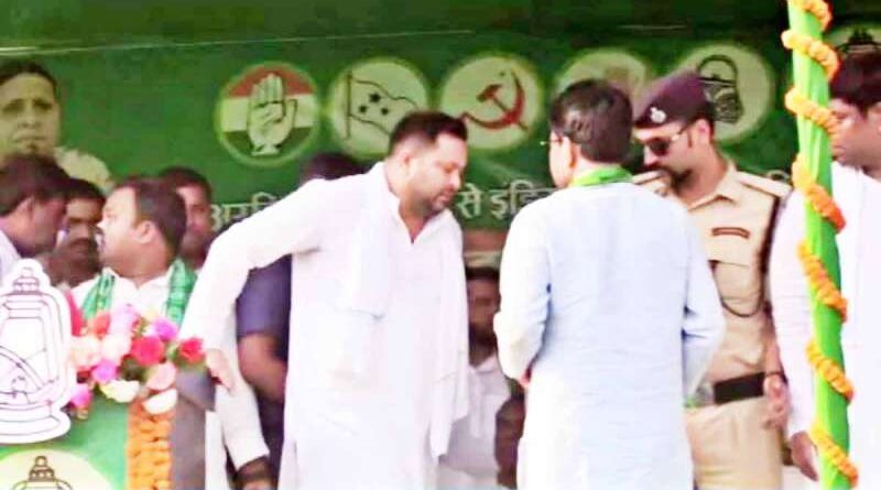 जनसभा के दौरान लड़खड़ाए तेजस्वी, तबीयत खराब होने के बाद कार्यकर्ताओं ने सहारा देकर मंच से उतारा