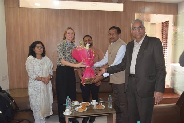 केएफडब्ल्यू बैंक जर्मनी के सदस्य़ सुश्री जोर्डिंस फ्लोदर, श्री राहुल ठाकुर सोमवार से बुधवार तक मप्र पश्चिम क्षेत्र कंपनी इंदौर क्षेत्र में ऊर्जा क्षेत्र के कार्यों के अवलोकन के लिए आए हैं। जर्मनी की सुश्री जोर्डिस फ्लोदर के नेतृत्व में इंदौर पहुंचे दल का पोलोग्राउंड बिजली कंपनी मुख्यालय में स्वागत मुख्य महाप्रबंधक श्री प्रकाश सिंह चौहान व अन्य वरिष्ठ अधिकारियों ने किया।