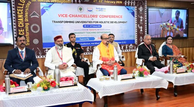 रायपुर। राज्यपाल रमेन डेका ने शनिवार को अटल बिहारी वाजपेयी विश्वविद्यालय  बिलासपुर में ‘ट्रांसफॉर्मिंग यूनिवर्सिटीज फॉर होलिस्टिक डेवलपमेंट’ विषय पर आयोजित कुलपतियों के दो दिवसीय सम्मेलन का उद्घाटन किया। सम्मेलन में देश और प्रदेश के विभिन्न विश्वविद्यालयों के कुल 42 कुलपतियों और पूर्व कुलपतियों ने भाग लिया।