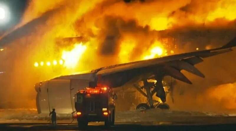 जापान टाइम्स के मुताबिक, तटरक्षक विमान सोमवार को मध्य जापान में आए 7.6 तीव्रता के भूकंप से प्रभावित क्षेत्र की मदद के लिए आपूर्ति ले जाने के मिशन पर था। एनएचके के फुटेज में विमान के इंजन क्षेत्र के पास से आग की लपटें निकलती दिख रही हैं और दमकलकर्मी आग पर काबू पा रहे हैं। दमकल की करीब 70 गाडिय़ों को भेजा गया। लेकिन, शाम साढ़े छह बजे (स्थानीय समय) तक विमान लगभग पूरी तरह आग की लपटों में घिर चुका था। हनेडा के सभी रनवे शाम करीब छह बजे बंद कर दिए गए। कुछ उड़ानों को चिबा प्रांत के नरिता हवाई अड्डे की ओर मोड़ा जा रहा है।