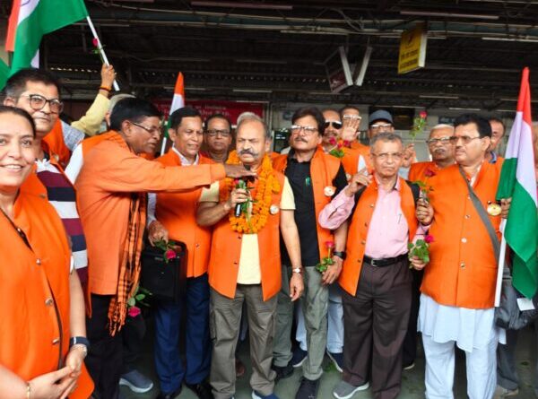 बिलासपुर । वन्दे मातरम मित्र मंडल के 103 सदस्य जिनमें 40 महिलाएं भी शामिल हैं आज राजधानी एक्सप्रेस से केसरिया जैकेट पहने हाथ में तिरंगा लिए नई दिल्ली के लिए रवाना हो गए। मित्र मंडल के संयोजक महेन्द्र जैन ने बताया कि कल 18 जून को वन्दे भारत एक्सप्रेस से जम्मू जायेंगे,एवं 19 जून की सुबह जम्मू से बसों से गुलमर्ग, सोनमर्ग,कारगिल, पेंगांग होते हुए 23 को लेह पहुंचेंगे ।जहां पर लेह में तीन दिवसीय सिन्धु महोत्सव में सम्मिलित होंगे। 27 जून को मनाली,कुरुक्षेत्र होते हुए 1 जुलाई को संपर्क क्रांति एक्सप्रेस से वापिस बिलासपुर पहुंचेंगे। महोत्सव में सम्मिलित होने पूरे देश से 2000 लोग आ रहे हैं, जिनके आवास एवं भोजन की व्यवस्था सिन्धु दर्शन यात्रा समिति की ओर से की गई है।