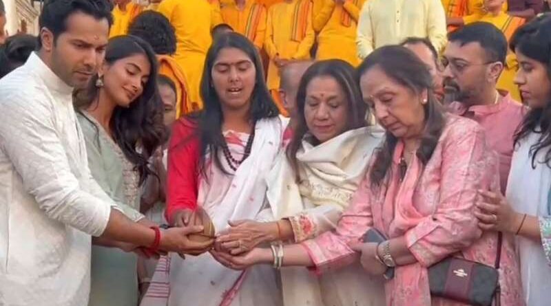 बॉलीवुड स्टार वरुण धवन और पूजा हेगड़े शुक्रवार को अपनी नई फिल्म की शूटिंग के लिए ऋषिकेश पहुंचे। पवित्र स्थान पर शूटिंग शुरू करने से पहले वरुण और पूजा को परमार्थ निकेतन आश्रम में गंगा आरती में भाग लेते हुए देखा गया। वे दोनों खुशी-खुशी भक्तिमय माहौल में डूबे रहे। वरुण धवन ने अपने इंस्टाग्राम हैंडल पर ऋषिकेश में अपने पहले शेड्यूल की कई तस्वीरें शेयर की हैं। तस्वीरें शेयर करते हुए उन्होंने लिखा, 'ऋषिकेश में हमारे शेड्यूल की शानदार शुरुआत धन्य।'