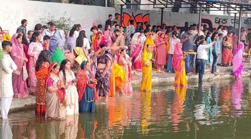 महिलाओं ने अस्ताचलगामी सूर्य को दिया अर्घ्य, आमातालाब छठ घाट पर उमड़े श्रद्धालु